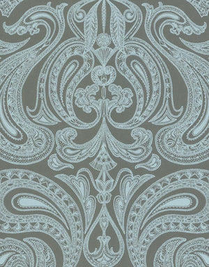 The Malabar wallpaper by Cole and Son presents an exquisite ode to classic design with its intricate paisley motifs. It features a subtle yet sophisticated grey and white colourway, with each paisley and floral detail outlined in a delicate white that stands out against the grey background. This timeless pattern exudes elegance, effortlessly transforming interiors with its blend of traditional charm and contemporary finesse. Ideal for creating a statement wall or a fully wrapped room that speaks of understated luxury.