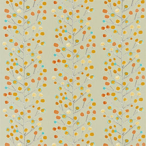 A simple stem outline with loosely drawn berries in blended tones creates the overall effect of a bold stripe on this 100% cotton fabric. Produced in zingy colourways, use this design to create freshness in living spaces and team with the wallpaper of the same name.