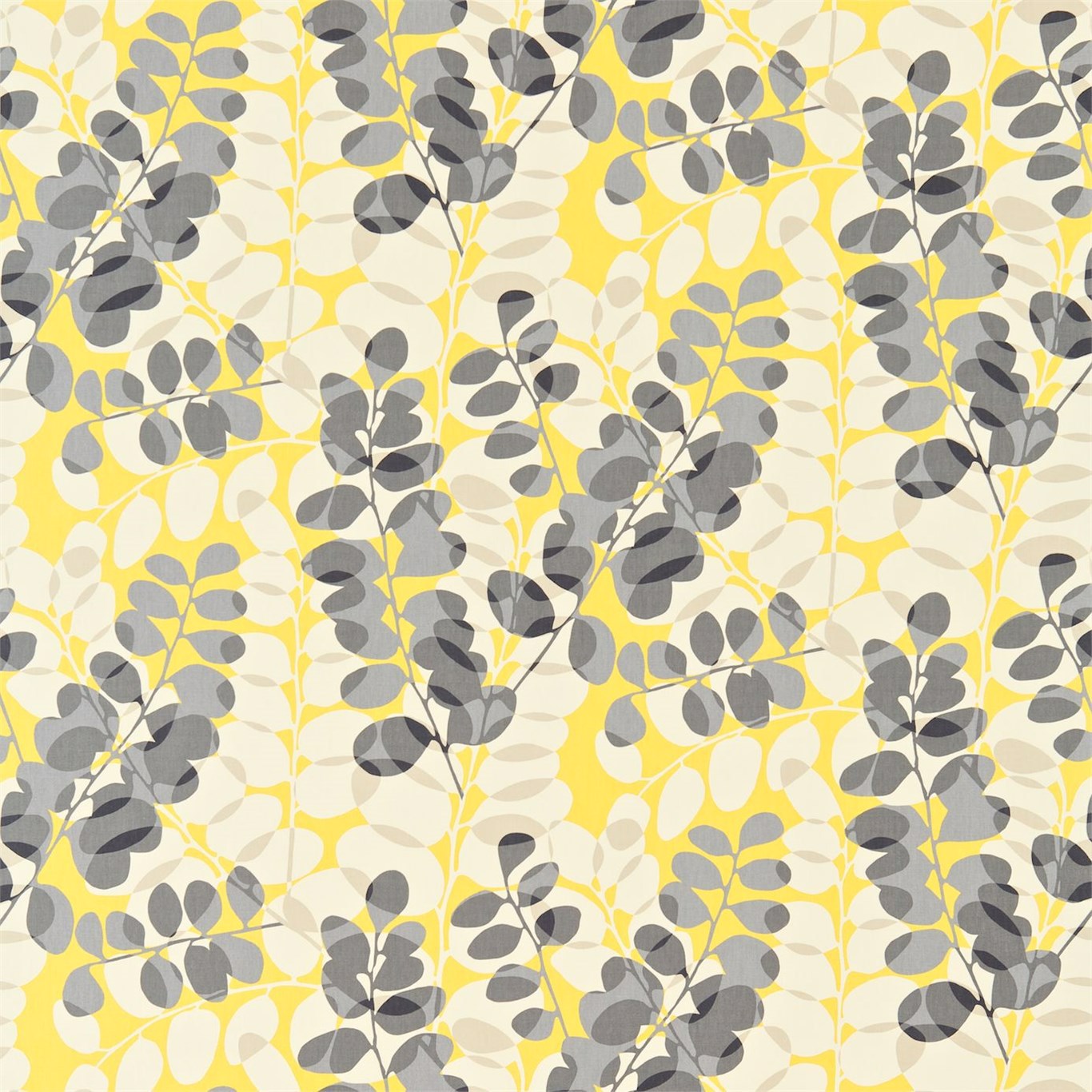 A shadowy silhouette of overlapping leaves and elegant swaying stems adorn this 100% cotton fabric, suitable for curtains, cushions and drapes.