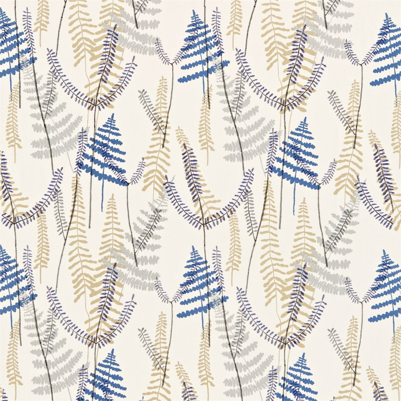 A printed embroidery fabric depicting layered fern leaves and fronds overstitched with delicate layered stems in gentle colourways. For use as blinds, cushions and drapes and the perfect partner for the wallpaper of the same name.