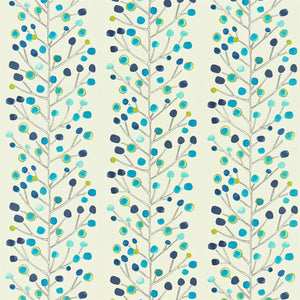 Esala - A stem outline with loosely drawn berries in blended tones creates the overall effect of a bold stripe on this 100% cotton fabric. Use this design to create freshness in living spaces and team with the wallpaper of the same name.