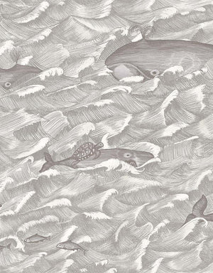 Dive into the dynamic seascapes of the Melville wallpaper by Cole and Son, where the monochromatic colourway brings to life an ocean teeming with whimsy. Serene shades of taupe and white dances across each roll, creating a captivating backdrop of waves and sea creatures. Adorn your walls with this elegant print, featuring majestic whales and playful fishes, all sketched with immaculate detail that invites the tranquillity of the deep blue sea into your home. The Melville design, with its charming maritime theme, promises to be a timeless addition to sophisticated interiors seeking a touch of nautical serenity.