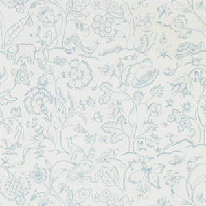 Embrace timeless elegance with the Middlemore wallpaper by Morris & Co., presenting a delicate blue outline on a crisp, white background. This enchanting design features an intricate array of flora and fauna, weaving together a tapestry of nature that brings sophisticated charm into any space. The intricate detail showcases flowers, birds, and whimsical creatures in a pattern that invites the serenity of a pastoral landscape indoors, perfect for gracing the walls of both traditional and contemporary homes.