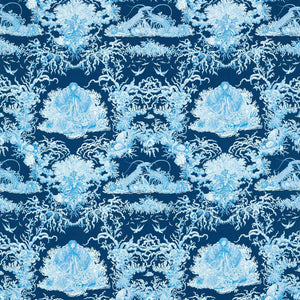 Monterey Bay captures the essence of one of the Pacific Coast`s most breathtaking marine protected areas. Inspired by a toile archive document, the design features lobsters, an octopus, clamshells, and coral intricately interlaced with varieties of kelp. The colourways accentuate the technique, reminiscent of copperplate etching.