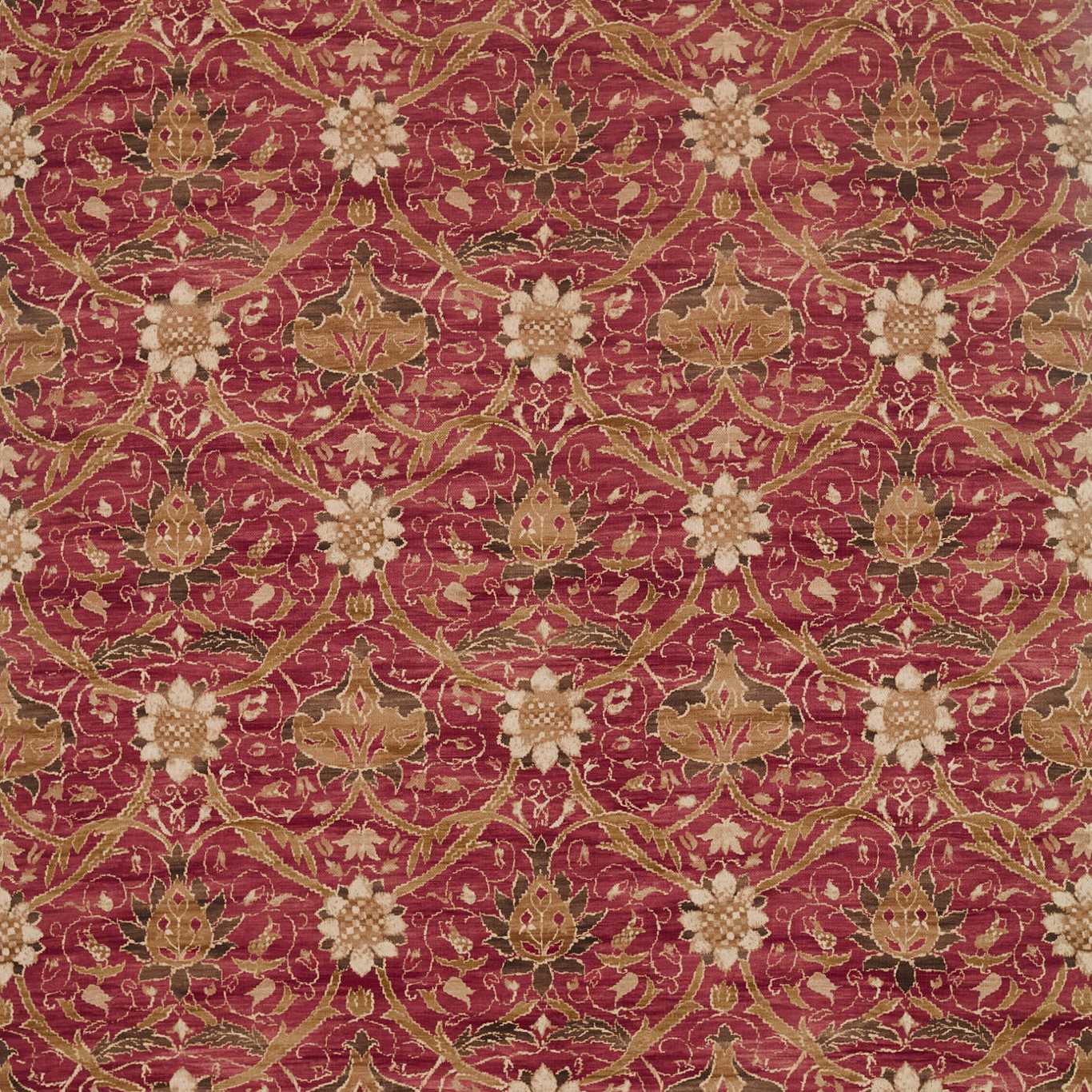 Based on a carpet designed by John Henry Dearle in the 1890s, this sumptuous linen-blend fabric depicts Persian, overblown flowers climbing in a trailing pattern with softened edges and available in distinct colourways. Use on upholstery to give a room an eclectic look and rich palette