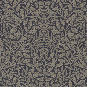 Immerse your space in the timeless elegance of the Pure Acorn Wallpaper from Morris and Co. This exquisite wallcovering boasts a harmonious colourway of deep navy and rich cream, presenting a stately backdrop for both contemporary and traditional interiors. The design features intricate botanical motifs, interwoven with stylised acorns and oak leaves - a nod to the beauty of the natural world. Classic yet versatile, this wallpaper ensconces your room in a cloak of sophistication with a gentle, tactile surface that speaks to its luxury craft.