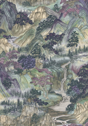 Indulge in the maximalist Cole & Son style with the dramatic landscapes of Kyoto to Tokyo that include water, mountains, and gardens with the scenic Mountainscape. The artistic tone honours Tani Bunchō’s style with a modern interpretation. The delicately hand-painted design allows you to escape into the detail of the stillness of the mountains and the flow of the water source, making your mind wonder across each peak and valley. Find your inspiration and Zen within the Mountainscape scene.