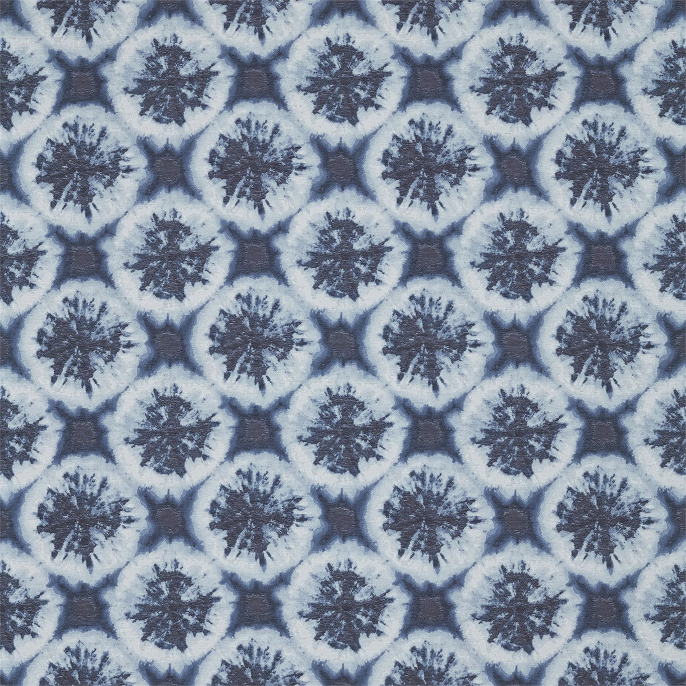 Anthozoa Fabrics - Nihan. A geometric fossil motif and tie-dye techniques combine to create a sophisticated, mid-scale fabric design, creating a distinct retro look for drapes and blinds. Team with the wallpaper of the same name.