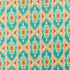 With its bold colours and complex pattern representative of the ikat silks woven in Uzbekistan, this colourful multidirectional repeated motif is printed on a lovely dual purpose cotton satin.