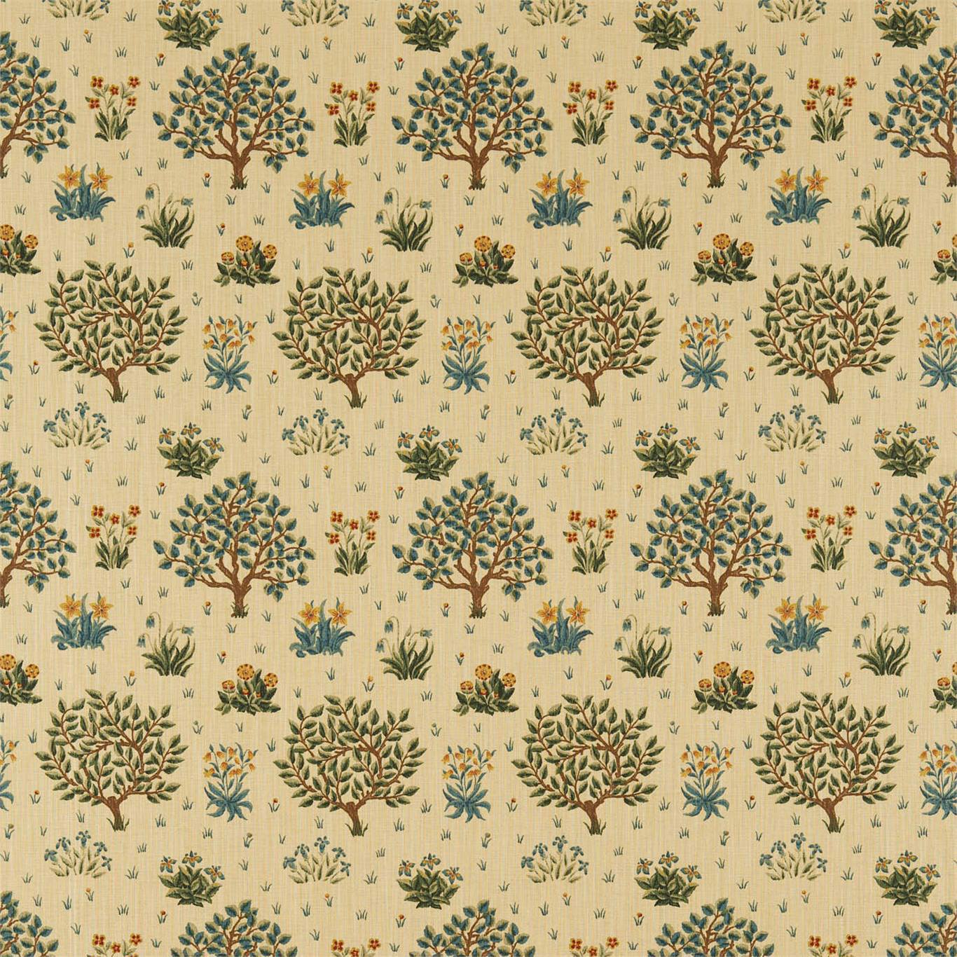 Inspired by Morris & Co.s medieval tapestries, this exquisite design features delicate printed trees and foliage carefully placed on plain linen-mix cloth, with a tapesty quality to the printed surface. Suitable for blinds, cushions, drapes and upholstery.