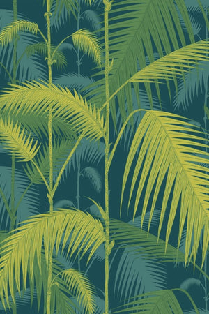 Imbue your living space with a touch of the tropics with the Palm Jungle wallpaper by Cole & Son. This luxurious wallcovering features an opulent teal backdrop, overlaid with lush fronds in vibrant shades of lime and olive, creating a rich, verdant canopy. The intricacy of the palms adds depth and texture, transforming any room into a serene escape. Perfect for adding a statement to both contemporary and traditional interiors, Palm Jungle envelops you in an exotic paradise.
