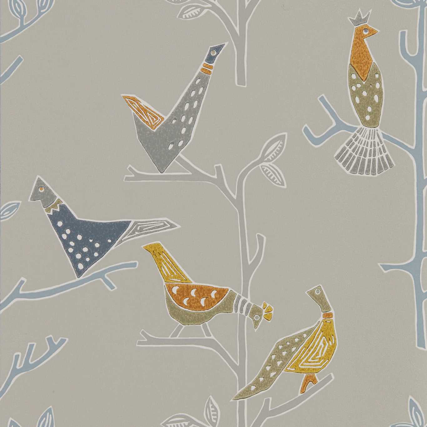 A simplistic wallpaper design of stylised birds and branches originally printed as a lino-cut. Perfect for combining with bold stripes and large-scale florals or teaming with the fabric of the same name. Recommended Paste: Harlequin Ready Mixed tub Paste. Paste the Wall