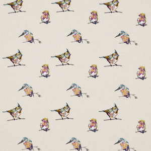 Fauvisimo - Persico. Enchanting British birds in all their beauty perch at random intervals on this linen-mix fabric design.