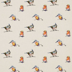 Fauvisimo - Persico. Enchanting British birds in all their beauty perch at random intervals on this linen-mix fabric design.