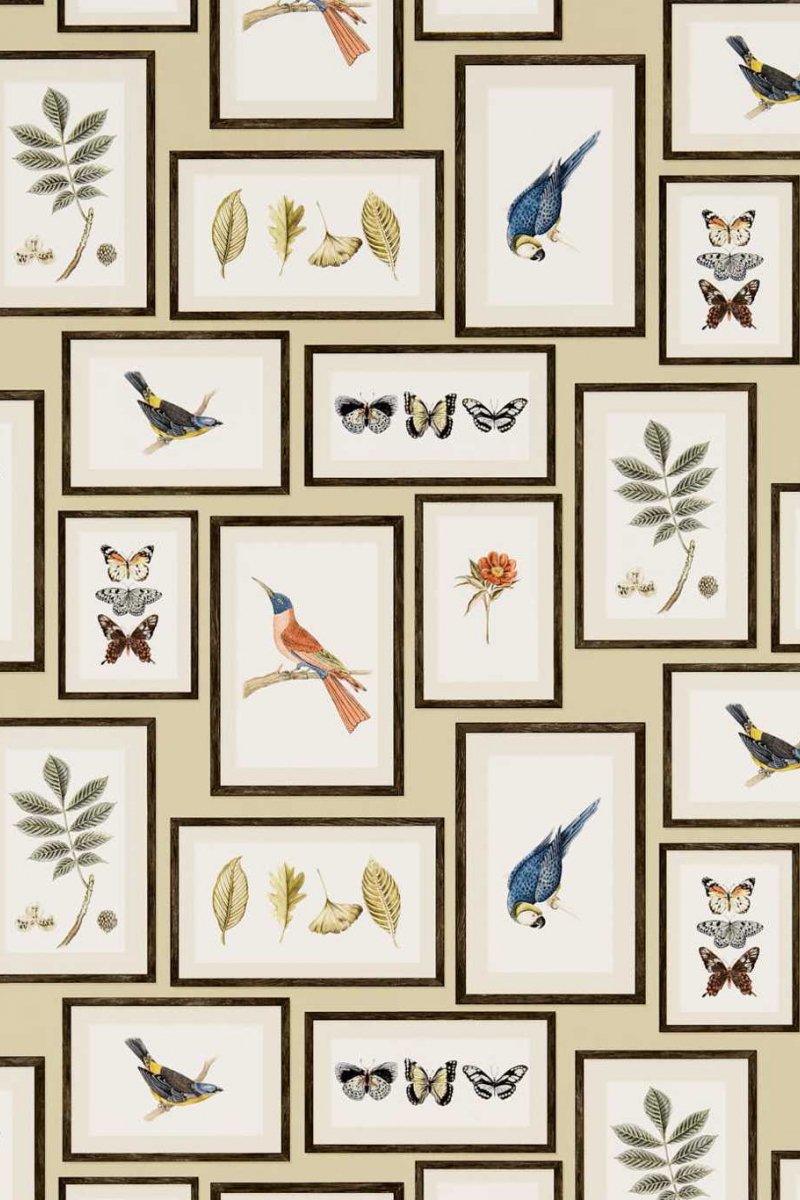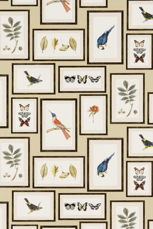 Adorn your walls with the charm of a timeless art exhibit with the Picture Gallery wallpaper. This design boasts an elegant beige backdrop, tastefully complemented by framed illustrations of nature's splendour. Each frame features richly detailed depictions of birds, butterflies, and botanicals, outlined by classic dark brown borders that add a touch of sophistication. This wallpaper reimagines vintage aesthetics for the contemporary home, inviting a serene and cultured atmosphere to any room it graces.