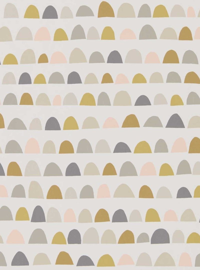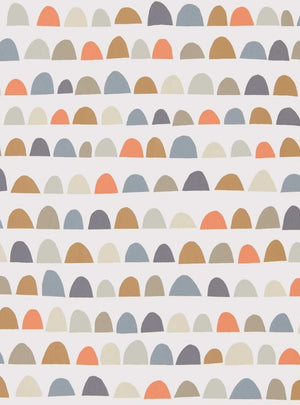 The Priya wallpaper by Scion brings a contemporary and understated charm to interiors with its array of softly rounded shapes. Its pleasing colourway features muted hues of slate blue, terracotta, and neutral tones, presenting a calming palette that tastefully complements modern home decor. The wallpaper's semi-regular pattern of scalloped motifs creates a gentle rhythm that is both soothing and stylish, making it an ideal choice for a serene and chic aesthetic.