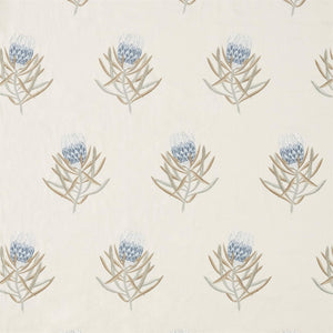 Protea Flower China Blue/Linen Fabric By Sanderson