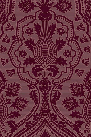 Embrace the opulent charm of the Pugin Palace Flock, an exquisite wallpaper by Cole & Son that exudes regal grandeur. The design is presented in a sumptuous burgundy hue, enhancing the aura of Victorian noble elegance. Intricate patterns of ornate foliage and classic architectural motifs are beautifully arranged, creating a sophisticated visual rhythm across the surface. The delicately textured flocking bestows a tactile richness, adding depth and a luxurious finish to both contemporary and traditional interiors.
