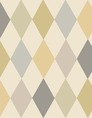 Adorn your walls with the geometric elegance of the Punchinello wallpaper by Cole and Son. This stylish decor boasts a sophisticated colourway of muted beiges, greys, and soft mustard tones, presenting a modern twist on classic design. Each rhombus is uniformly sized, creating a harmonious and eye-catching pattern that provides a subtle yet impactful backdrop. Perfect for a contemporary interior, this wallpaper exudes class and can transform any space into a chic and inviting environment.