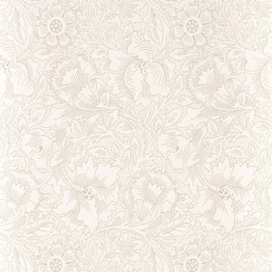 Immerse your space in the timeless elegance of the Pure Poppy wallpaper by Morris & Co. This exquisite design features a delicate colourway of soft beiges and muted creams, exuding a serene charm yet capturing attention with its intricate botanical motifs. Gentle lines interweave to depict an array of foliage and blooming poppies, radiating a subtle sophistication. Infuse a touch of nature's artistry and heritage into your home with this graceful wall adornment.