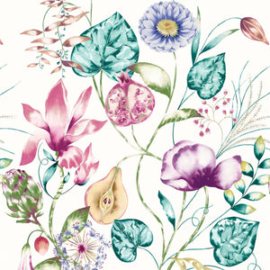 Zapara Wallpapers - Quintessence. Make a statement with this opulent wallpaper panel with a floor-to-ceiling bouquet of loosely entwined seedheads, artichokes, figs, pomegranates and other exotic fruits. Recommended Paste Harlequin Ready Mixed Tub Paste