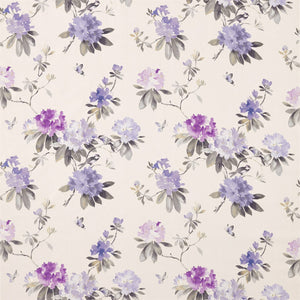 Pretty birds perch amongst flamboyant rhododendron leaves to create a botanical fabric design produced on 100% linen, bringing both drama and feminine beauty into the home and produced in vibrant colourways.
