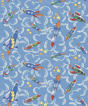 Blast into a world of adventure with the Rockets wallpaper by Cath Kidston. This delightful design features an array of colourful rockets soaring through a soft blue sky, accompanied by wispy white clouds and twinkling yellow stars. The playful pattern is perfect for sparking imagination in a child's bedroom or playroom. It's a fanciful yet sophisticated choice that combines a sense of fun with classic charm, ideal for a touch of whimsy on your walls.