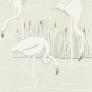 Salinas Wallpapers - Salinas. Fabulous flamingos pose elegantly in shallow waters on this wallpaper, which is surface printed for a hand painted look. The chalky ground and metallic bulrush highlights add a characterful twist to feature walls. Available in lively colourways, a fabric of the same name is also available. Recommended Paste Harlequin Ready Mixed Tub Paste. Paste the Wall