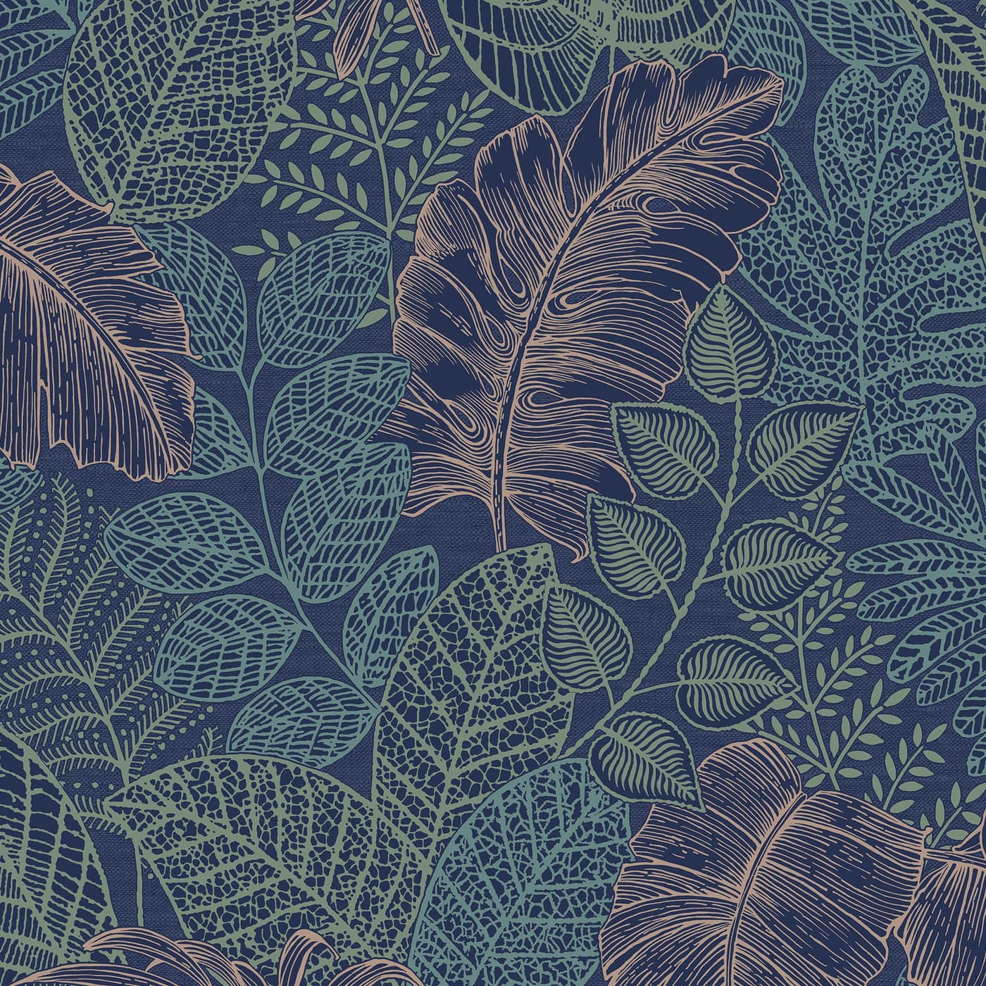Scattered Leaves Blue/Copper Wallpaper 122422 by Superfresco Easy