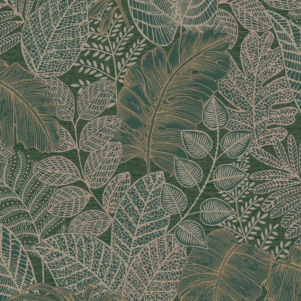Scattered Leaves Forest Green is an intricate wallpaper with a silhouetted detailed design, with a decadant copper detailing this will suit any room in your home.