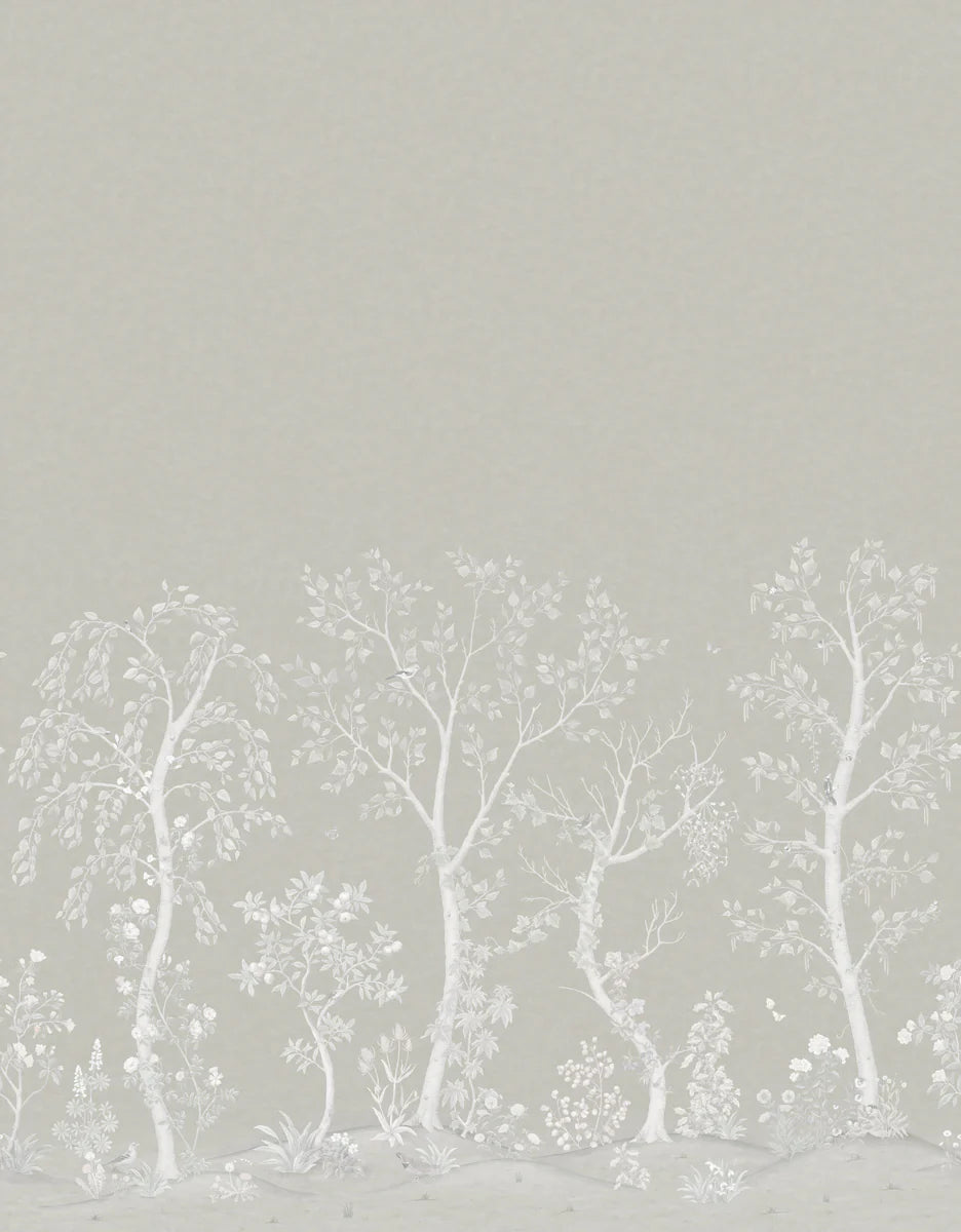 easonal Woods celebrates the charming sophistication of unspoilt nature. Maintaining the authenticity of Cole & Son's perennial icon, Woods, Seasonal Woods features silver birch trees painted in a softer hand, surrounded by a symphony of woodland flora and fauna throughout the year. Like a balletic movement, each tree is full of life. Butterflies flutter by, woodpeckers, robins, and other creatures perch in branches with trailing ivy, holly, bramble berries, and apples displaying the bounty of the hedgerow as it changes over the seasons.