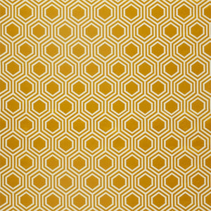 Salinas Prints And Weaves - Selo. A woven geometric fabric features interlocking hexagons, with a vibrant, luxurious lustre and produced on a high sheen satin ground. Decorated with metallic tones, this design is available in dramatic colourways and is suitable for blinds and curtains.