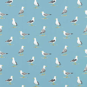 Friendly seagulls perch in the sand on this charming 100% cotton fabric. Originally created with thick layers of gouache paint to give a stylised, brushstroke texture, this design is available in four gentle colourways. Bring the seaside into any room of your home and team with the wallpaper of the same name.