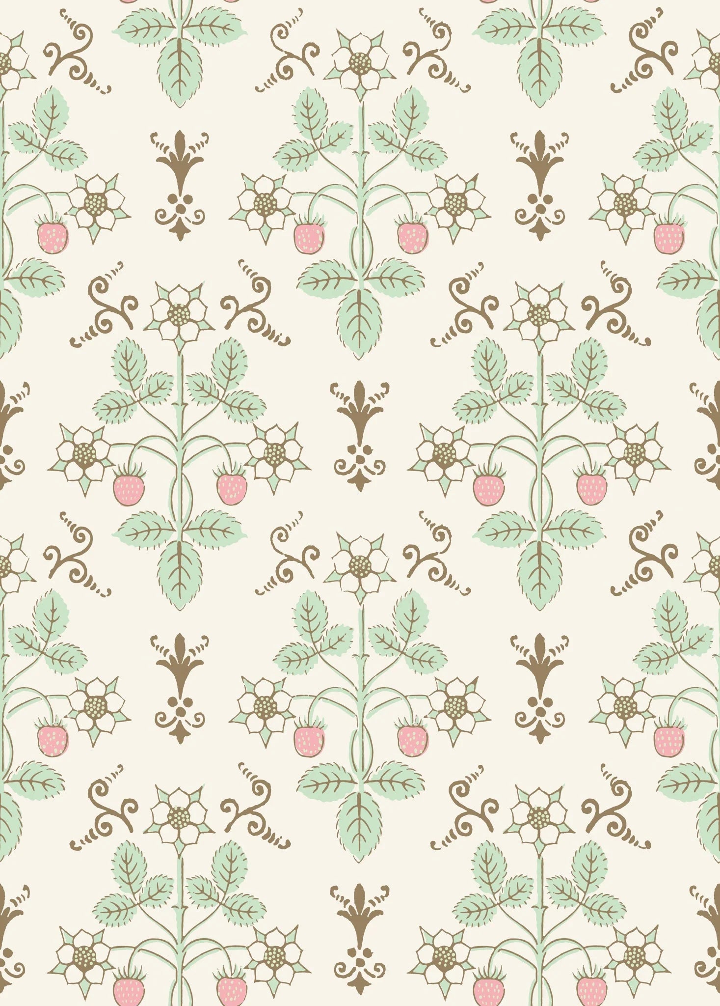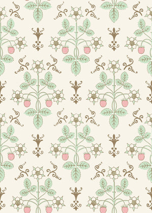 Strawberry‚ uniform print is an organic geometric of delicate strawberry fruits and flowers. Originally a hand-block printed design from the 1840s, this design has been reimagined in soft hues, playing to the pastoral elements found throughout.
