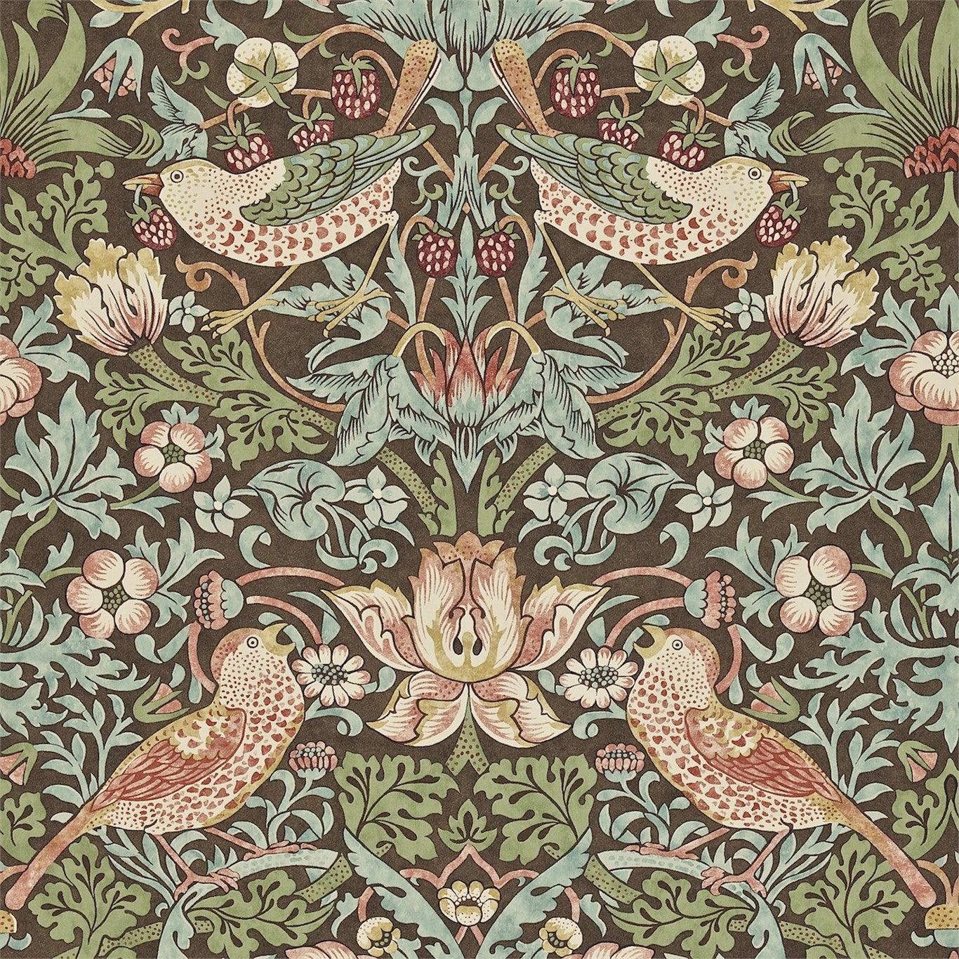 Strawberry Thief Chocolate/Slate Wallpaper DMCR216477 by Morris & Co