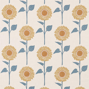 A graphic sunflower motif stands proud on this elegant block printed fabric produced in both natural and vibrant colourways and adds a contemporary twist to the collection. Use on curtains for maximum impact.