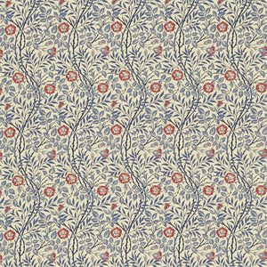 Sweet Briar DMFPSW205 Indigo/Red Fabric By Morris & Co