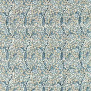 Always recognising that true beauty has its thorns J.H. Dearle designed Sweet Briar in 1912. Depicting the small rose heads flowering pleasantly amongst the barbed stems this is the tender yet honest view of nature that characterised the Morris & Co. output under Dearle and Morris. Indigo & Red is joined by Boughs & Rose and Peach & Teal colourways.