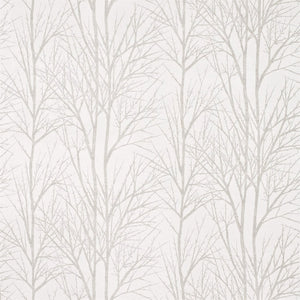 Poetica Fabrics - Tabella. A floaty linen voile fabric depicting delicate silhouettes of a tree in bud printed in two coordinating colours on a neutral background. Use to add a touch of woodland charm to blinds and curtains.