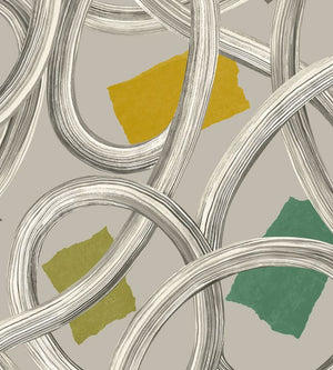 Artistic brush strokes create a curving textural swirl across the surface of your wall. Twisted Geo is composed of abstracted geometric loops and links. A dynamic and fluid pattern with added colour blocks offering depth and dramatic interest.