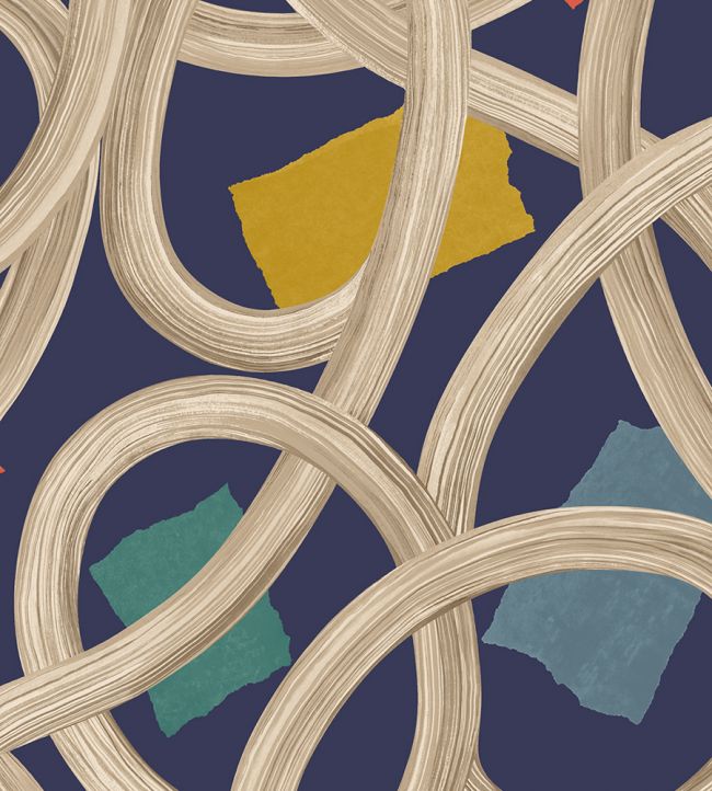 Artistic brush strokes create a curving textural swirl across the surface of your wall. Twisted Geo is composed of abstracted geometric loops and links. A dynamic and fluid pattern with added colour blocks offering depth and dramatic interest.
