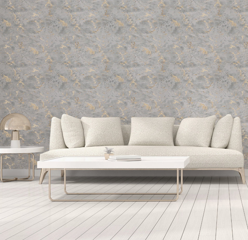 This Venetian Plaster wallpaper is designed to give a contemporary and industrial feel to a room. The cool grey tones mixed with deeper grey shade add a depth of colour, the gold then finished the look off with a metallic sheen. This wallpaper will look great when used to decorate a whole room or to create a feature wall, looking good hung in many rooms, especially living rooms and dining rooms.