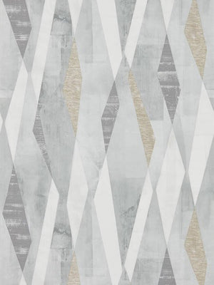 Transform your space with the Vertices wallpaper by Harlequin, showcasing a harmonious blend of muted greys and understated off-whites, accented with sophisticated hints of metallic gold. This contemporary design features an interplay of geometric shapes that bring a sense of dimension and movement to any room. The subtle texture within the grey areas adds depth, while the crisp white lines sharpen the overall look, balancing the aesthetic between bold modernity and elegant simplicity.