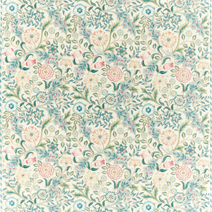 Created by combining elements from two William Morris designed embroideries Wilhelmina`s scrolling acanthus leaves honeysuckle and foliage meld to create this all-over decorative design printed on a cotton linen mix. Available in three colourways: Ivory Teal and Moss