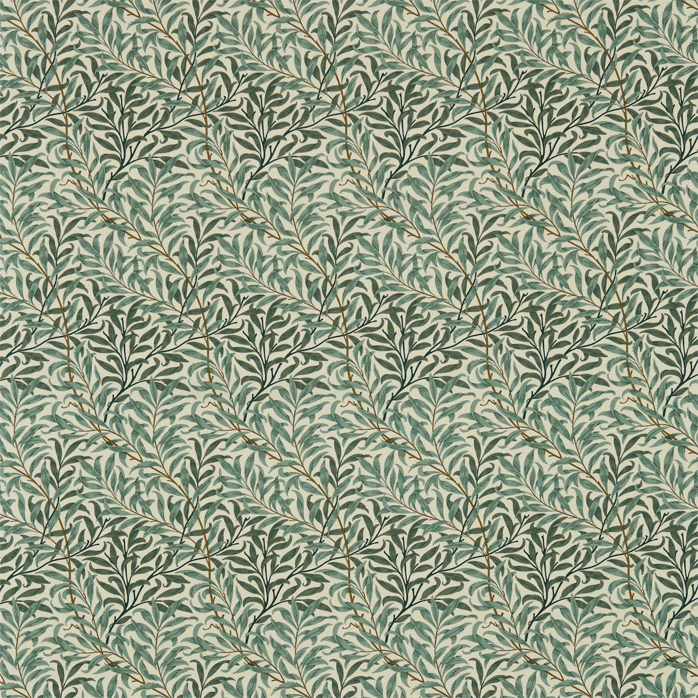 Entwining stems and delicate willow leaves combine in this enduring fabric design which defines Morris abiding reputation. This much-loved Morris design has been reproduced as a printed fabric and echoes the wallpaper design. The original pattern from 1887 has been updated and printed on cotton and linen-blend fabrics in harmonious colourways for use as blinds, cushions drapes and upholstery.