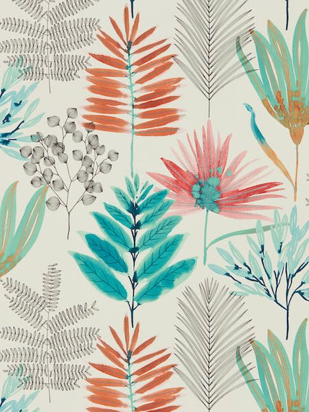 Inspired by the natural world, the Yasuni wallpaper by Harlequin breathes freshness into any space. This design features a delightful medley of botanical motifs in a soothing colourway of teal, coral, and neutral tones. Artistic interpretations of leaves and flora are elegantly arrayed across a cream backdrop, adding a contemporary yet tranquil touch. Perfect for creating an airy, inviting atmosphere, this wallpaper harmonises effortlessly with both modern and traditional decors.
