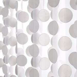 Satin discs appliqued onto a transparent sheer.